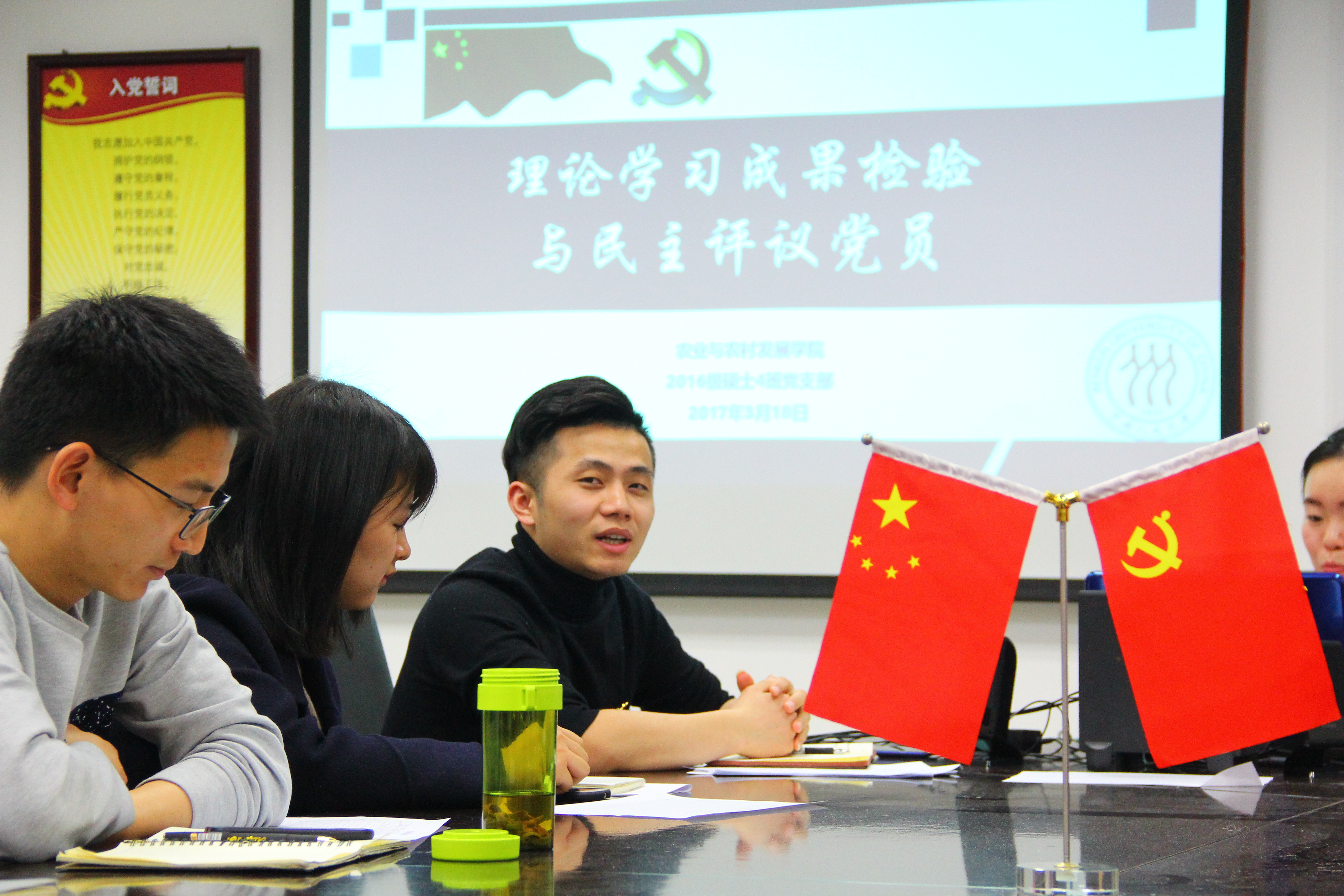 2017-03-213月18日,威尼斯人娱乐场官网 2016级硕士4班党支部在明德主楼“党员之家”召开组织生活会,进行理论学习成果检验与民主评议党员。