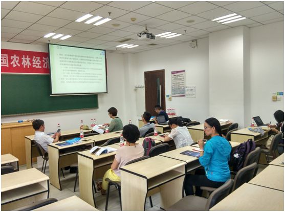 威尼斯人娱乐场官网 柯水发副教授(第二排左)、北京农学院经管院硕士生导师黄雷博士(第二排右)认真听取报告
