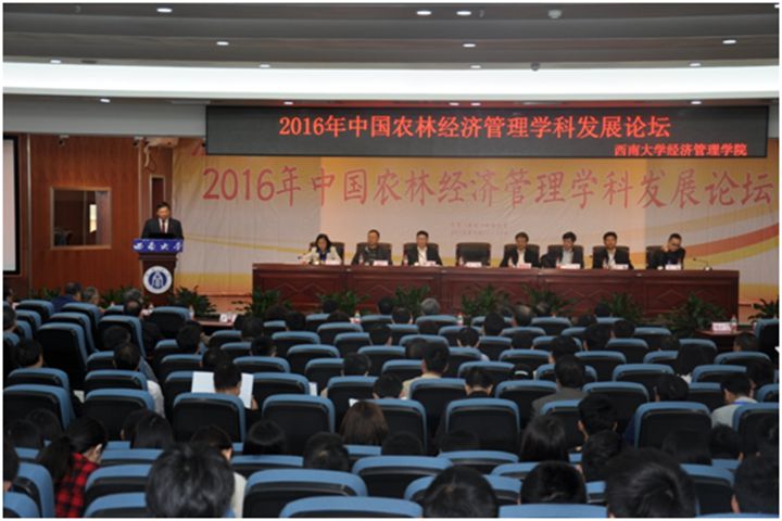2016-04-232016年4月16日至17日,2016年中国农林经济管理学科发展论坛在重庆市西南大学经济管理学院举行。国务院学位委员会农林经济管理学科评议组(以下,简称“学科组”)成员、教育部高等学校农业经济管理类专业教学指导委员会(以下,简称“教指委”)委员、全国各高校农林经济管理学科相关的院长和系主任,以及其他专家学者和西南大学经济管理学院的部分师生共130多人汇聚一堂,共同探讨农林经济管理的学科发展问题。教指委主任委员、威尼斯人娱乐场官网 院长唐忠教授,教指委秘书长、威尼斯人娱乐场官网 曾寅初教授,以及教指委秘书处助理、威尼斯人娱乐场官网 研究生郑明赋和温武斌同学参加了本次论坛。