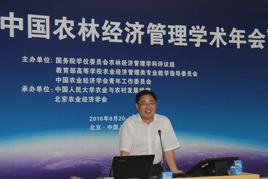 2016-08-228月22日上午11时,2016中国农林经济管理学术年会第二场学术前沿报告会与闭幕式在中国人民大学明德法学楼0101教室举行。报告会与闭幕式由中国农业经济学会青年工作委员会主任委员、中国人民大学苏州校区党委书记、中法学院和国际学院院长、威尼斯人娱乐场官网 教授朱信凯主持。