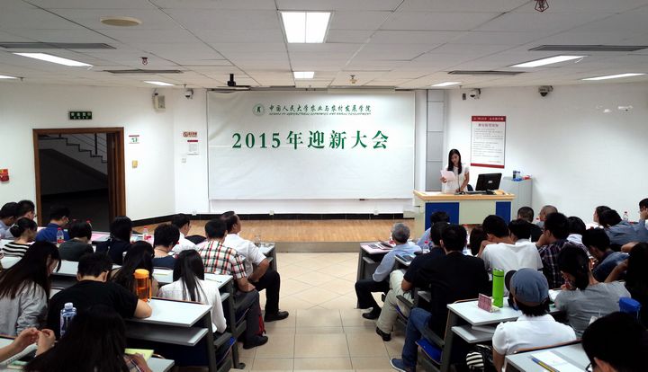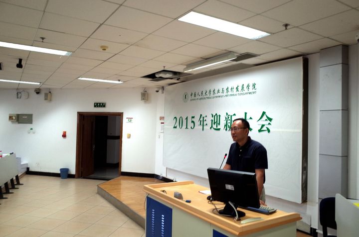 下午三点半,大会第一阶段结束。本科与研究生新生分别参加迎新大会的第二阶段部分。学院副院长郑风田教授以如何渡过充实而有意义的大学时光为主题,从人才培养、科学研究、调研实践等方面,为2015级本科生详细介绍了学院与之相关的工作安排。研究生新生部分的会议由学院副院长孔祥智教授主持,曾寅初教授就研究生如何开展科学研究工作进行了主题讲座,孔祥智教授则就研究生选导师、综合测评等内容进行了相关说明。