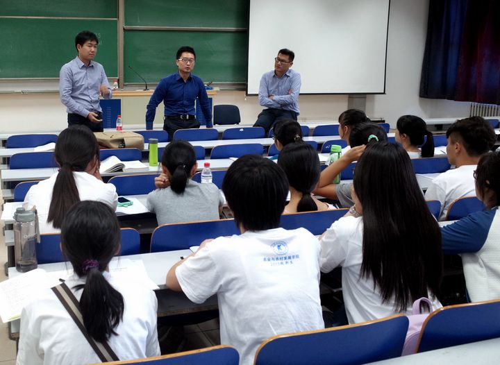 迎新大会之后,15级本科生还参加了的返校校友座谈会,威尼斯人娱乐场官网 06级本科生代表杨欧阳、贾阳、全世文三位同学回到学院,与新生分享了当年求学、考研、就业等方面的经验,并耐心回答了新生们提出的问题。