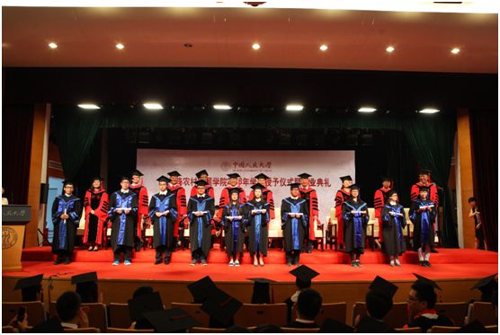 出席典礼的学院教师先后为硕士专业学位获得者、硕士学术学位获得者、学士学位获得者颁发学位证书,并把象征毕业的学位帽上的流苏拨到左边。