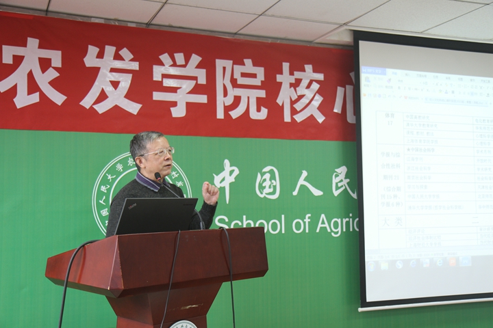 随后,副院长郑风田教授介绍了学院修订核心期刊目录的背景和依据,指出了学院修订核心期刊目录的重点和难点。郑风田副院长表示,学院修订核心期刊的依据主要有四个:一是学校核心期刊修订分类指导意见,二是教育部第四轮学科评估推荐的A类期刊目录,三是国家制定的管理科学的重要期刊,四是学院原来的期刊目录。核心期刊目录既要兼顾国内外期刊平衡,又要具有较强学术引导作用,有利于农业经济学科的长期发展,还要考虑人力资源管理中的晋升与奖励问题,三者的取舍和平衡是核心期刊目录修订的重点与难点所在。