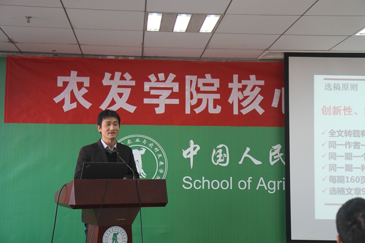 此后,院长助理陈卫平教授向大家介绍了学院复印报刊资料《农业经济研究》的工作进展,说明了刊物的主要栏目、选稿原则、转载及获奖情况,并就未来如何提高刊物质量提出了自己的观点。